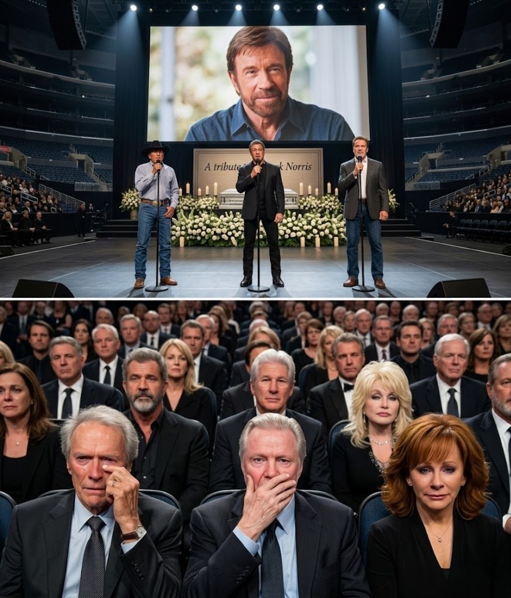 There are moments that seem almost too powerful to be real—stories that spread quickly because they touch something deep within us. The idea that, at the funeral of Chuck Norris, a long-forgotten song suddenly filled the air, bringing together George Strait, Sylvester Stallone, and Arnold Schwarzenegger in an unexpected, emotional reunion—it’s the kind of story that feels cinematic, almost otherworldly.