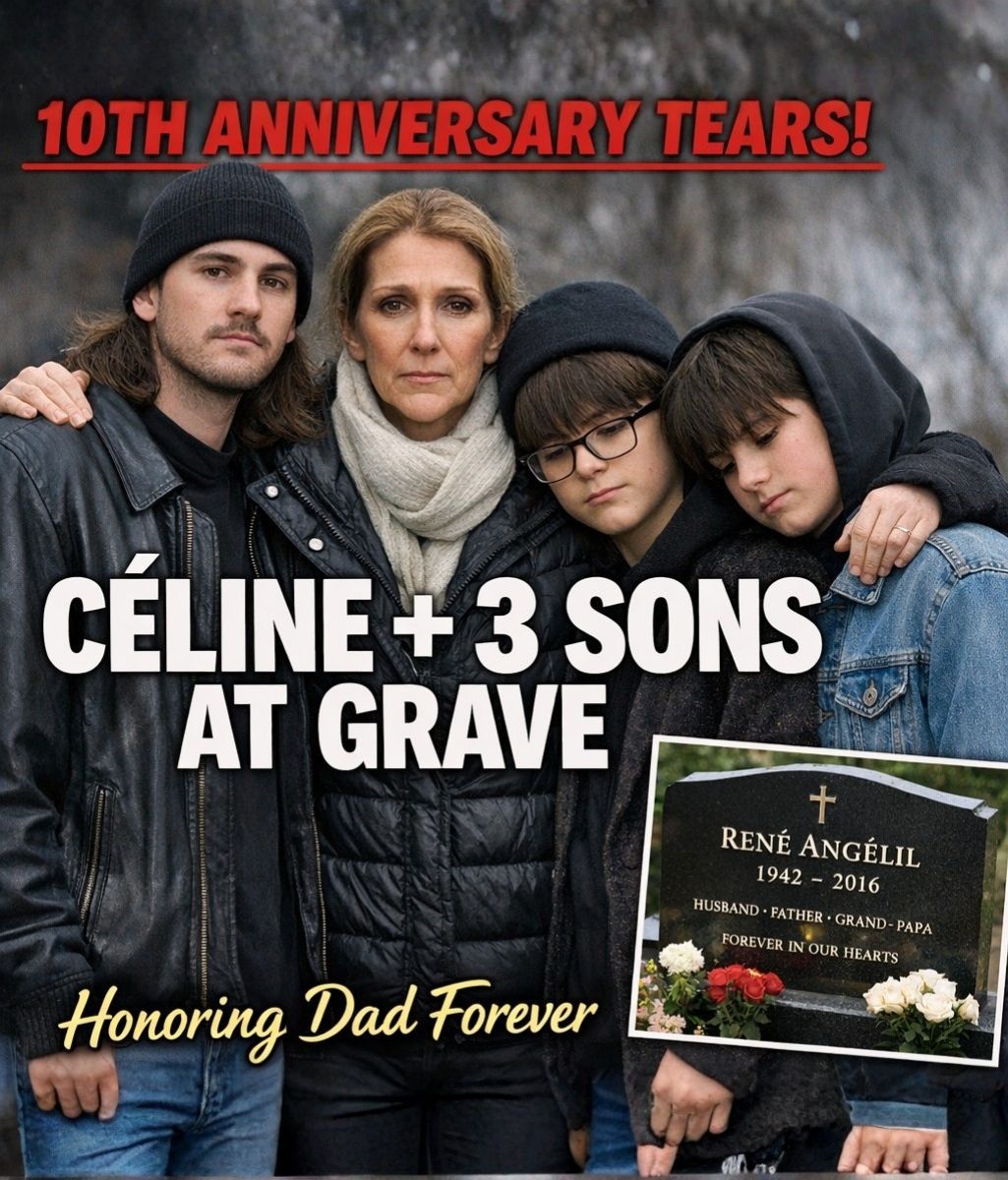 On the exact 10th anniversary of René Angélil’s passing, a moment unfolded so quiet and intimate that no one expected to witness it — and yet it has moved hearts around the world. Céline Dion, accompanied by her three sons, stood together at René’s grave, honoring not a legend, but “Dad.”