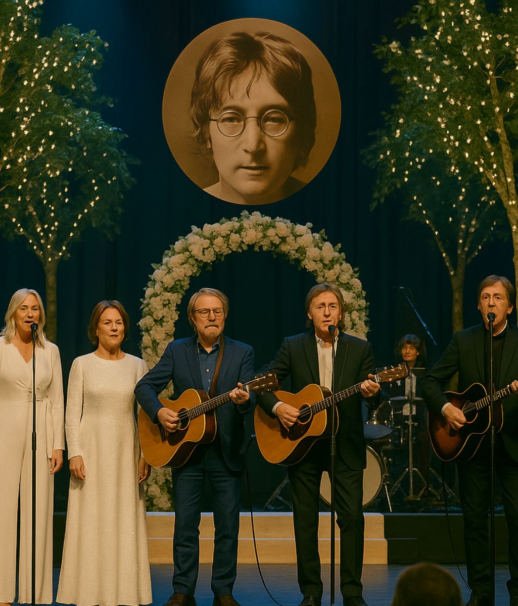 It was a night unlike any other — a night where music became prayer, and the stage transformed into a cathedral of love, memory, and reverence. Under soft golden lights, two of the most iconic forces in pop history — ABBA and members of The Beatles — came together to honor the life and legacy of John Lennon, the dreamer who taught the world to imagine peace.
